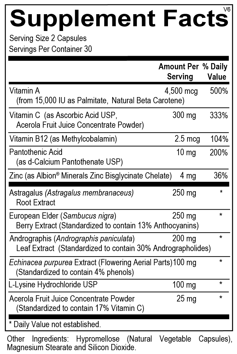 Strengthens Immune FunctionThe unique combination of nutrients in Immunity Pro works together to strengthen overall immune function through multiple pathways. Zinc activates thymic factor, a thymus hormone with vital immune-supporting properties, while also maintaining helper T-cell lymphocyte function, NK cell activity, macrophage function, and antibody production. Vitamin C supports specific components of the immune system, including NK cell activity and lymphocyte function, while vitamin A stimulates white blood cell function and increases antibody response. L-lysine has been shown to improve immune function by increasing CD3 T-cells, IgG, IgA, and IgM. This multi-faceted approach to immune support ensures comprehensive protection against seasonal and environmental challenges.